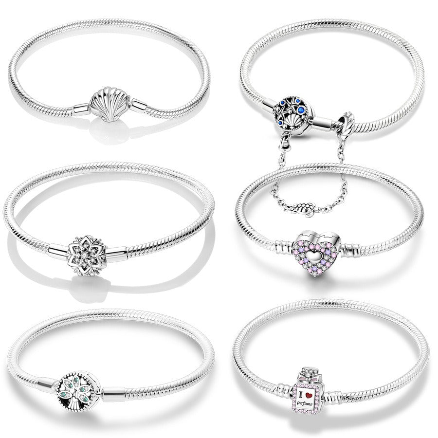 Copper Plated 925 Silver Bracelet Starfish Shell Turtle Basic Chain Pan Family Beads DIY Handmade