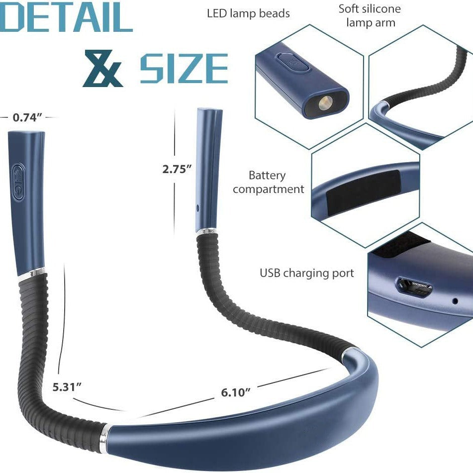 Simply wear the lamp around your neck while reading or trimming your eyebrows,