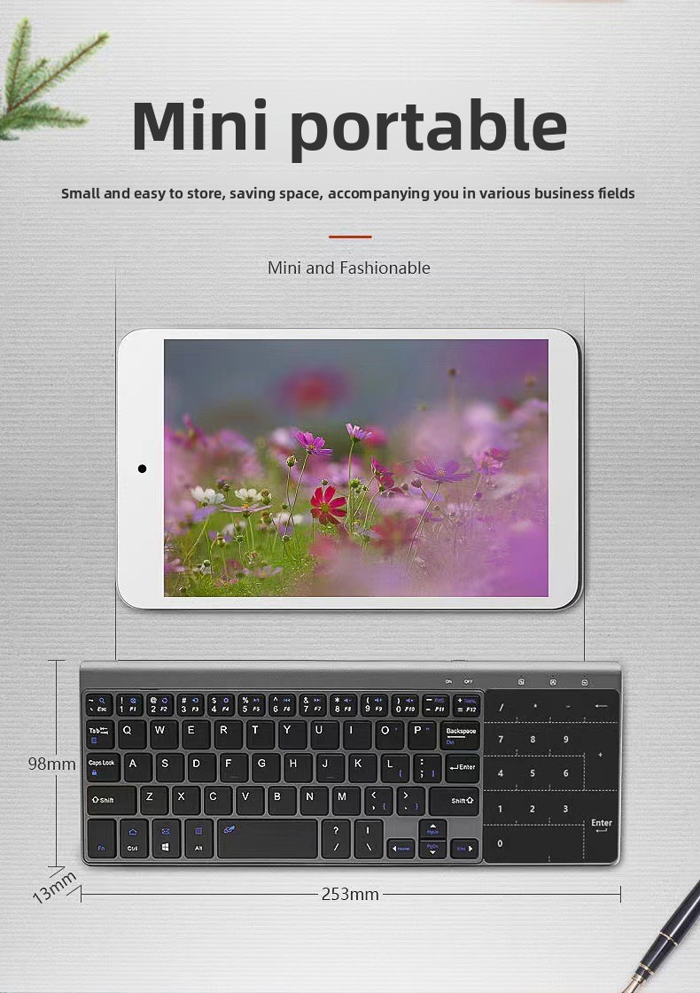 Compact Design: Mini size (25.3*9.6*1.3cm) and lightweight (0.23kg) for portability.