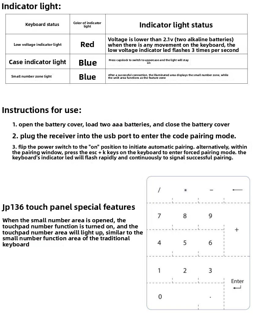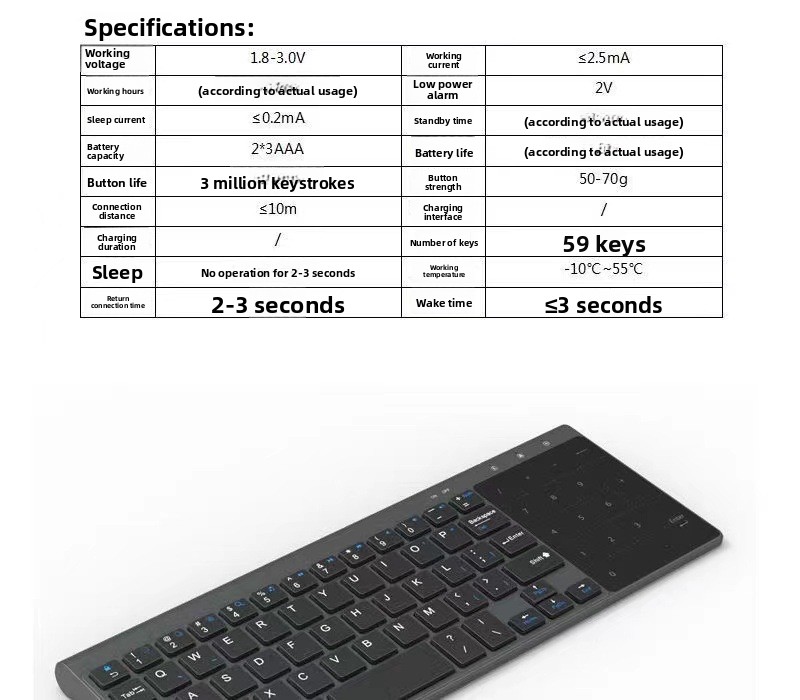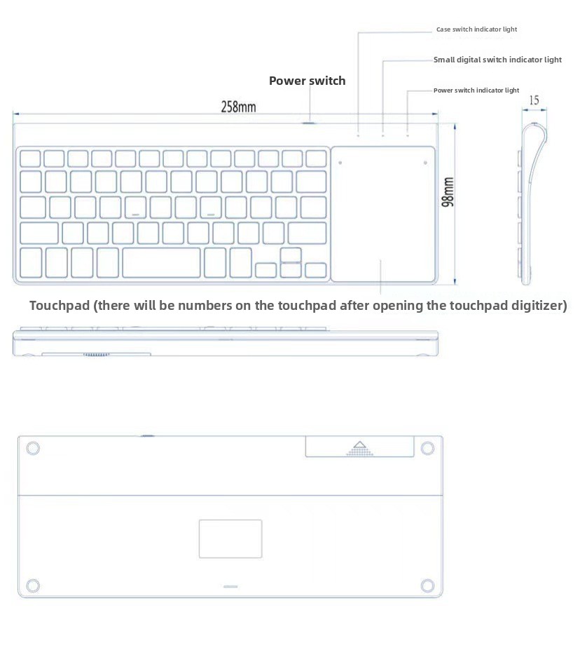 Wireless Bluetooth Mini Keyboard with Touch and Digital Pad